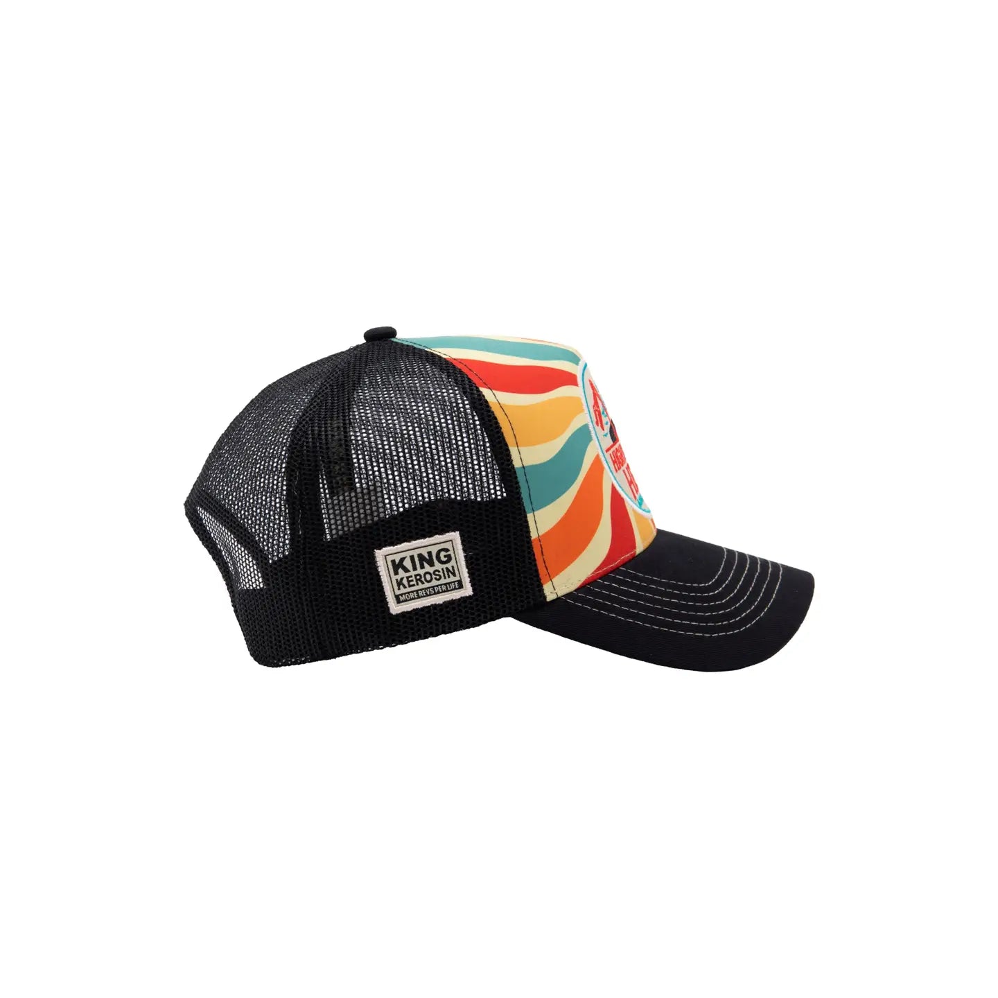 This King Kerosin trucker cap brings bold colours and that classic chopper spirit into one easy piece. The large embroidered front patch keeps it strong, while the colour gradient on the curved brim adds that proper retro touch.