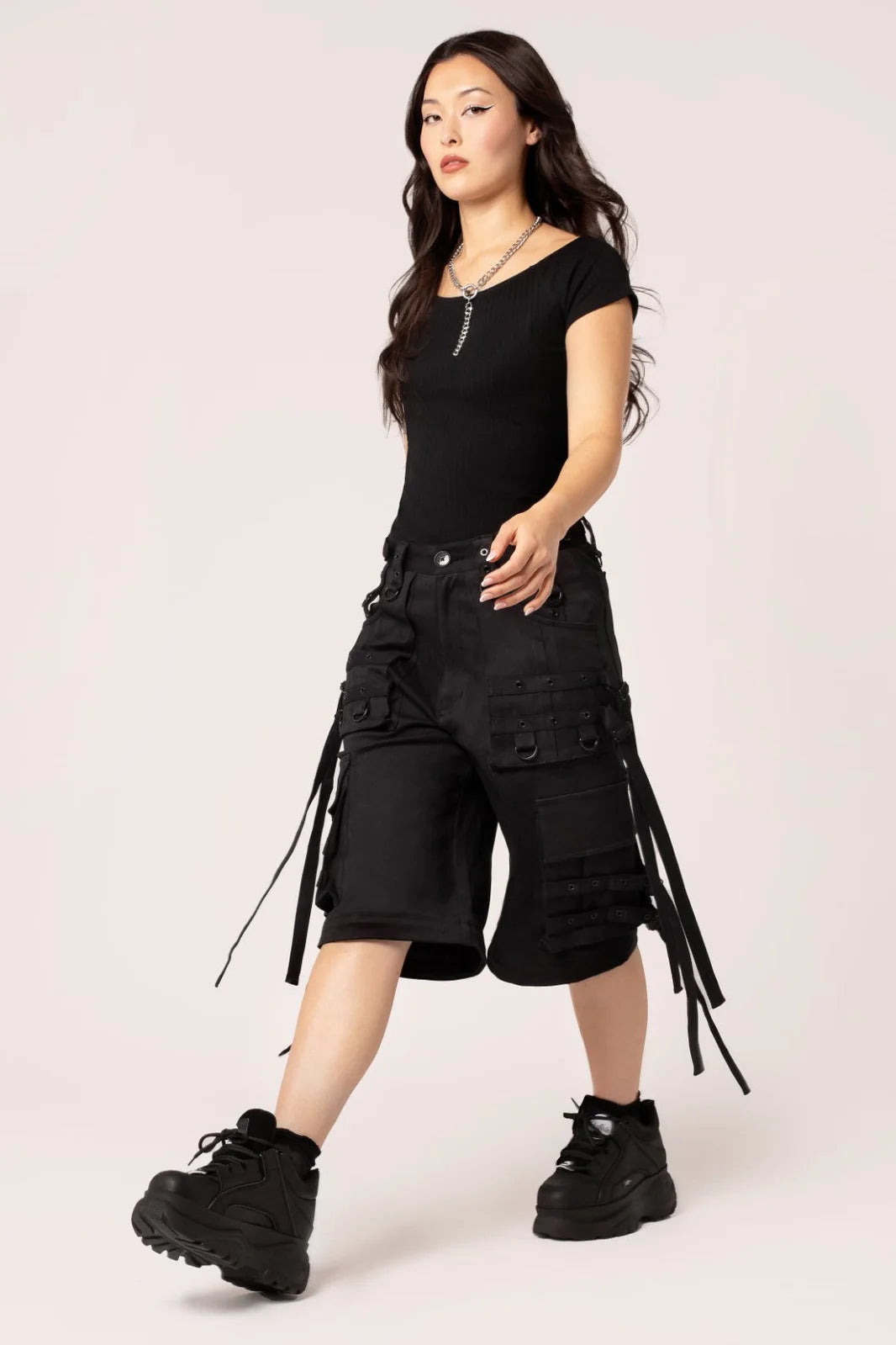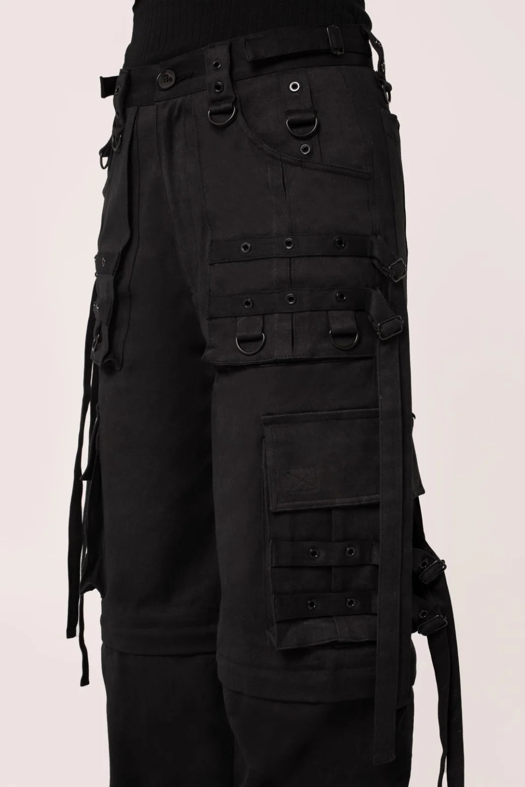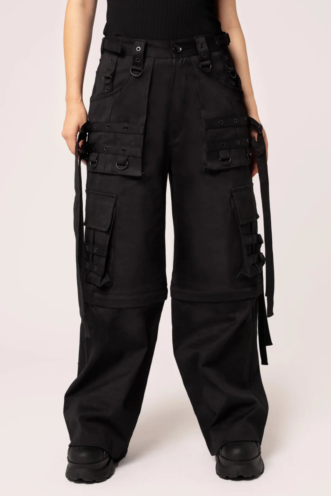 Built for stomping, lounging, or just looking like a total badass. These black Neo Trousers bring all the goth energy with wide legs, chunky cargo pockets, and enough D-rings to make your chains jealous. Bonus: the legs zip off just below the knees, so you can switch it up when the vibe (or the weather) calls for it.