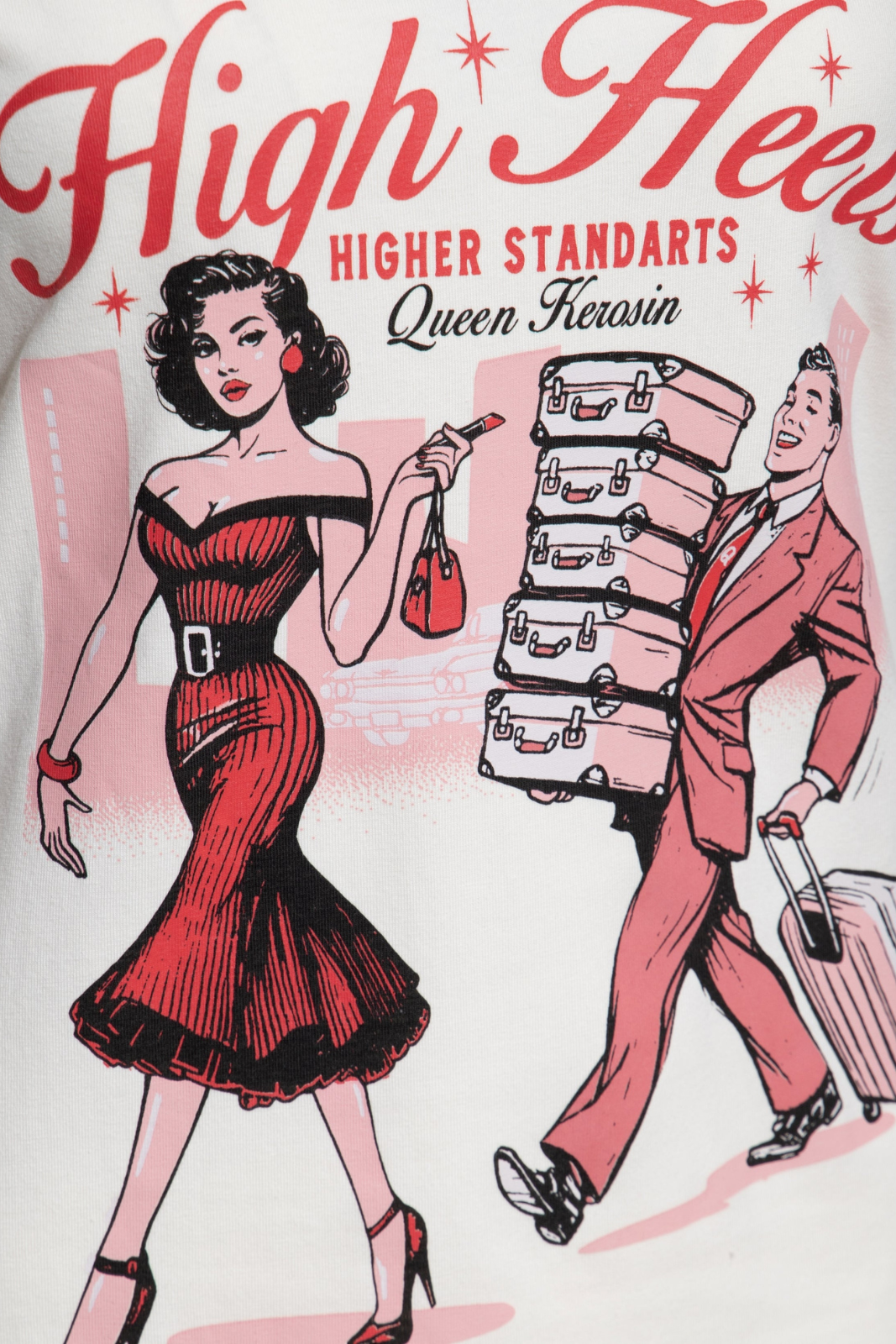This T-shirt says exactly what it needs to say. The “High Heels – Higher Standards” front print brings that confident 50s attitude to life, inspired by classic pin-up style and unapologetic feminine strength.