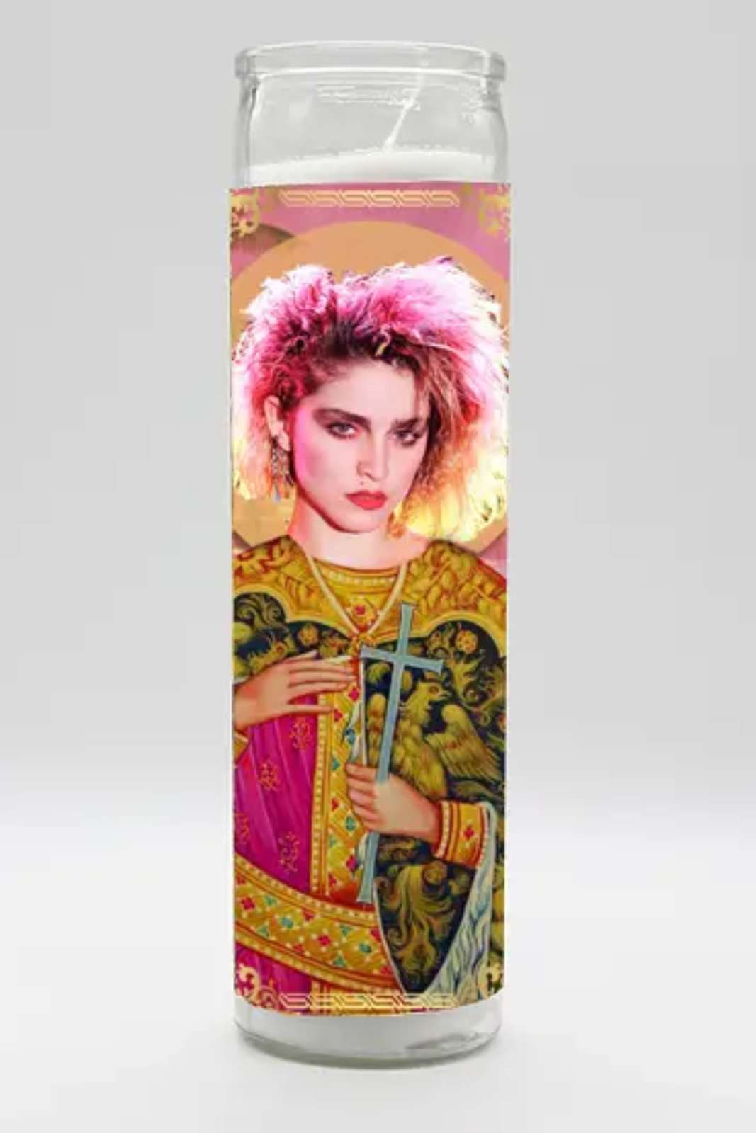 Pray to the queen of pop with this Madonna Prayer Candle!