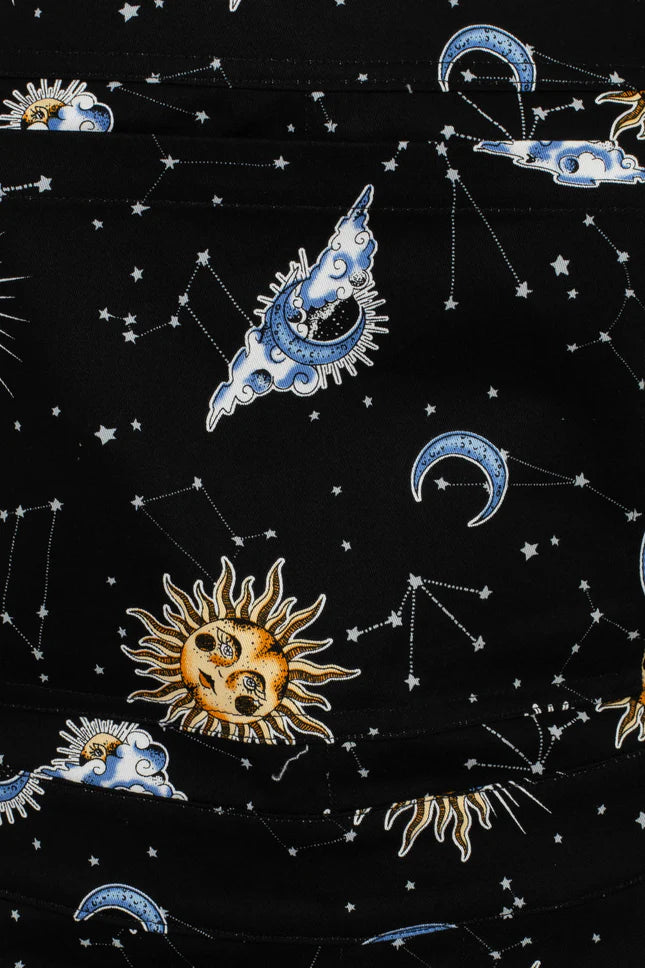 Easy, comfy and just a little bit magical. The Solaris Dungarees are made from stretch cotton twill and covered in a celestial moon and star print that adds something special to an everyday outfit.